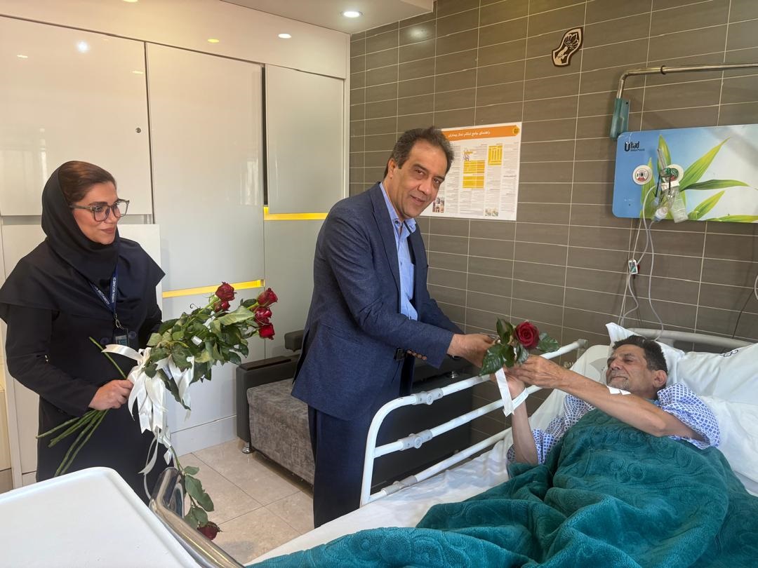 به گزارش روابط عمومی به مناسبت بزرگداشت روز جهانی سالمند و هفته ملی سالمند و به منظور تکریم سالمندان بستری در بیمارستان ، جناب آقای دکتر محسن سلیمانی(مدیرعامل و رئیس بیمارستان) در معیت سوپروایزر آموزش سلامت ، ضمن عیادت از بیماران بستری در بخش های مختلف بیمارستان با آرزوی سلامتی و بهبودی کامل ، هدایایی ( بسته های سلامت سالمندی به همراه پمفلت های آموزشی)  و شاخه ای گل تقدیم ایشان نمودند .